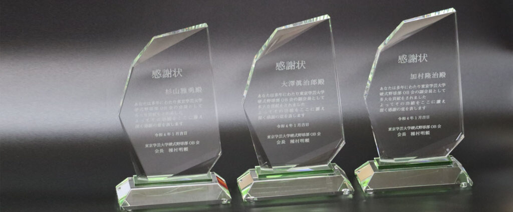 クリスタル、ブロンズ、トロフィー、楯、メダル、社章・バッジ、ノベルティ、など多くの商品とオリジナル記念品の製造・販売(オーダーメイド)をし、社内表彰品や各種コンペ、退職記念品や周年記念品などのご注文に迅速に対応いたします。
