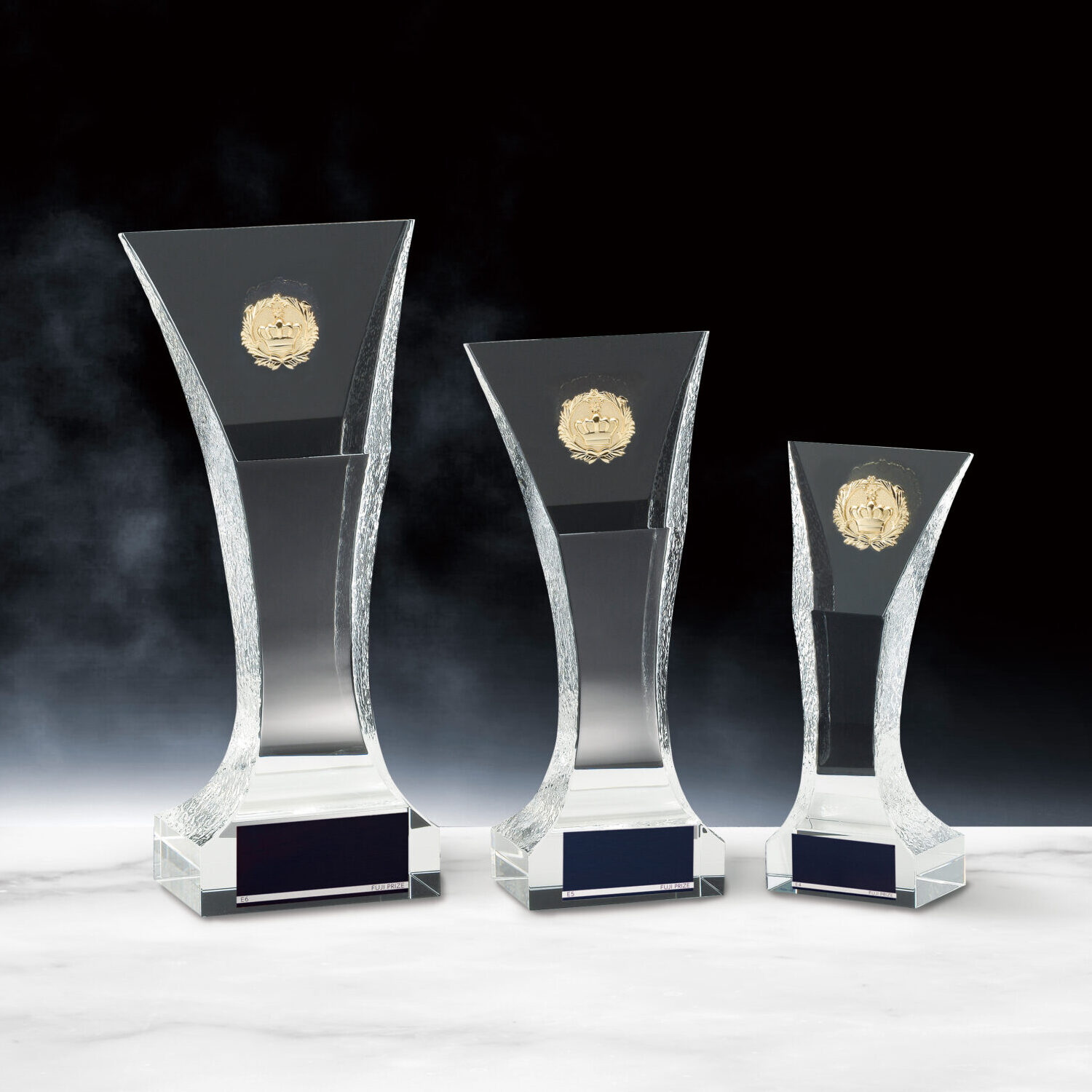両サイドに特殊な荒らし加工を施した王冠レリーフが入っているトロフィーです。