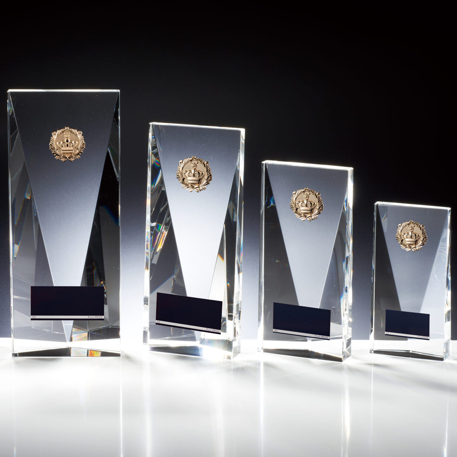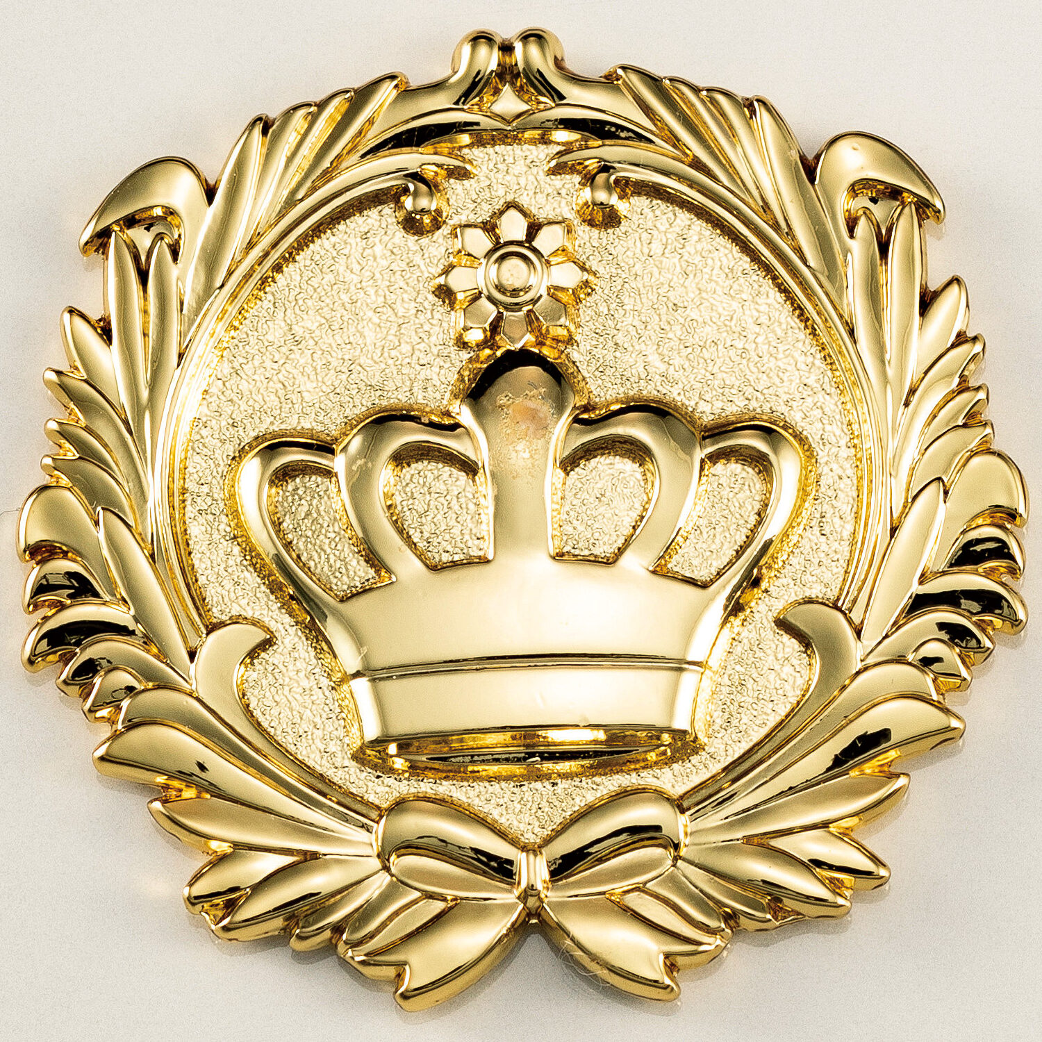 表面がフラット、背面はV字にカットされており、王冠レリーフが入っているトロフィーです。