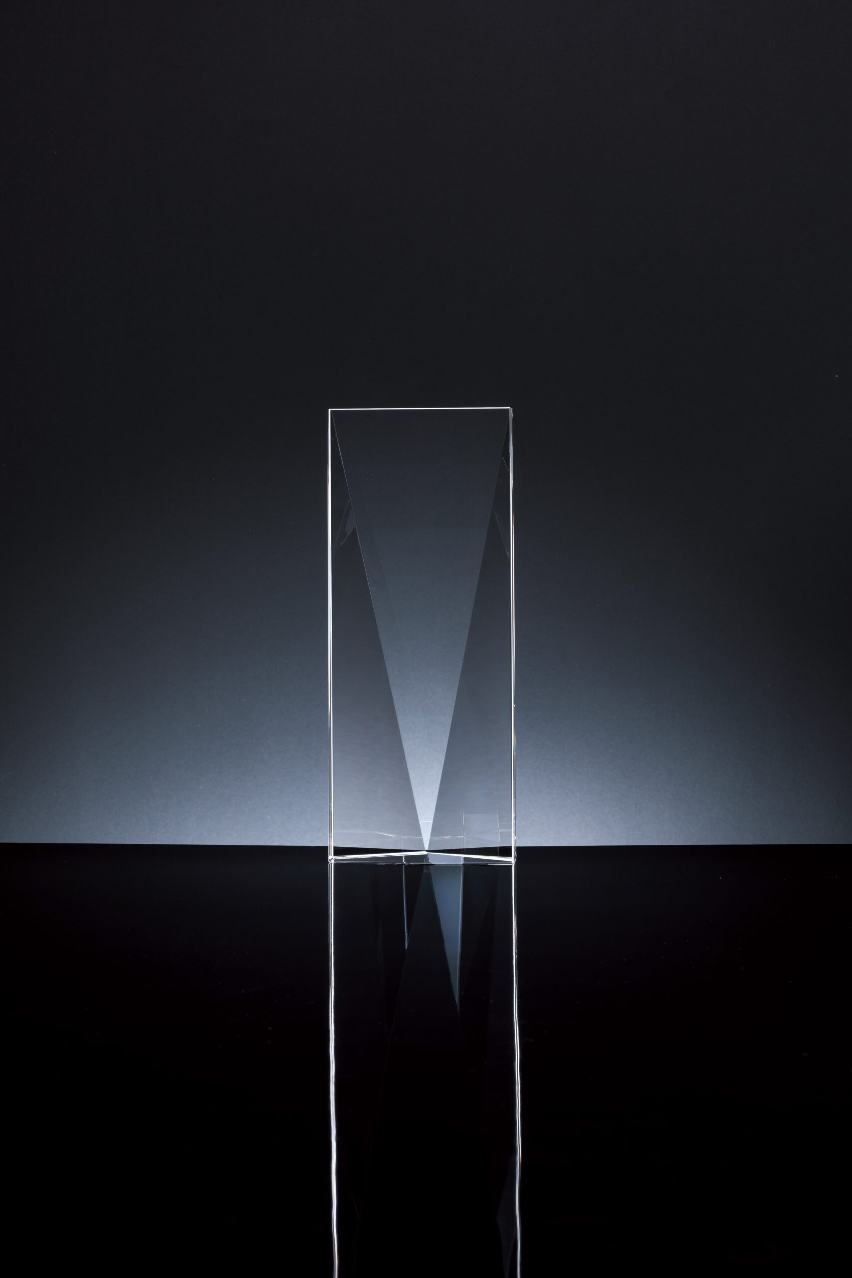 表面がフラット、背面はV字にカットされているトロフィーです。