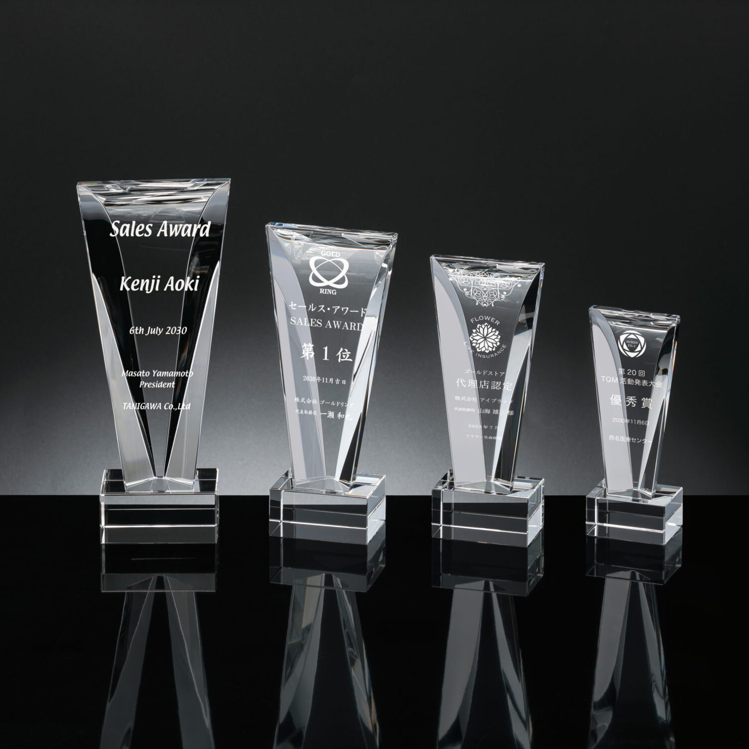 光学ガラス製のクリスタルトロフィーです。
