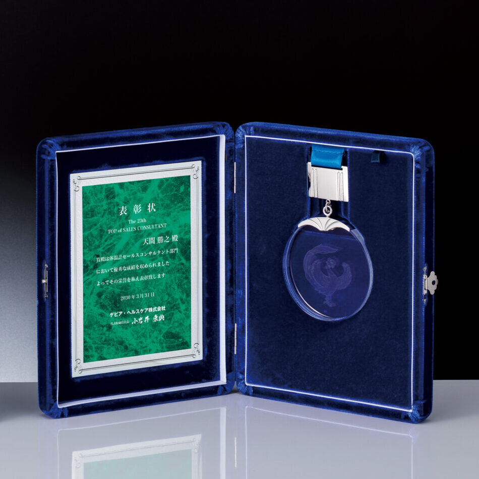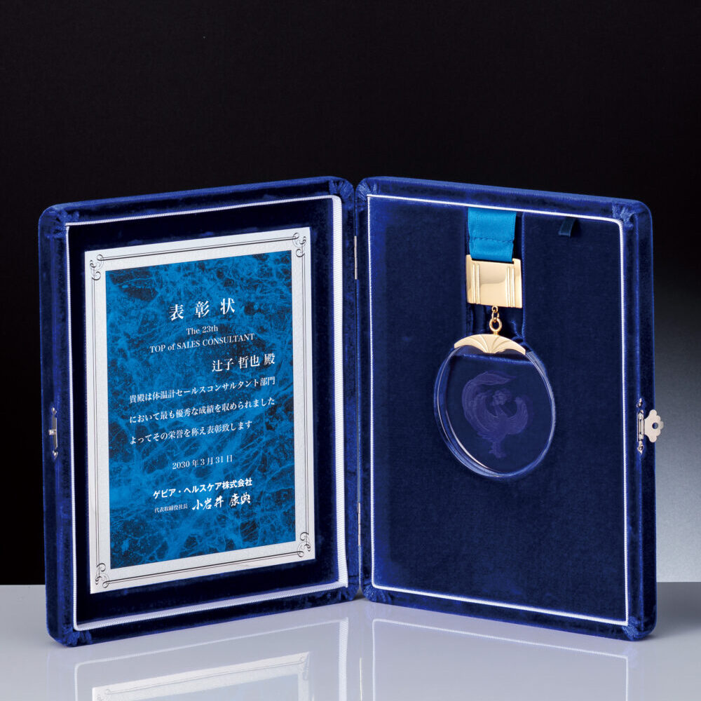(本体:ベルベッド貼/メダル75Φ:光学ガラス・真鍮製金具/プレート:アルミ製)
