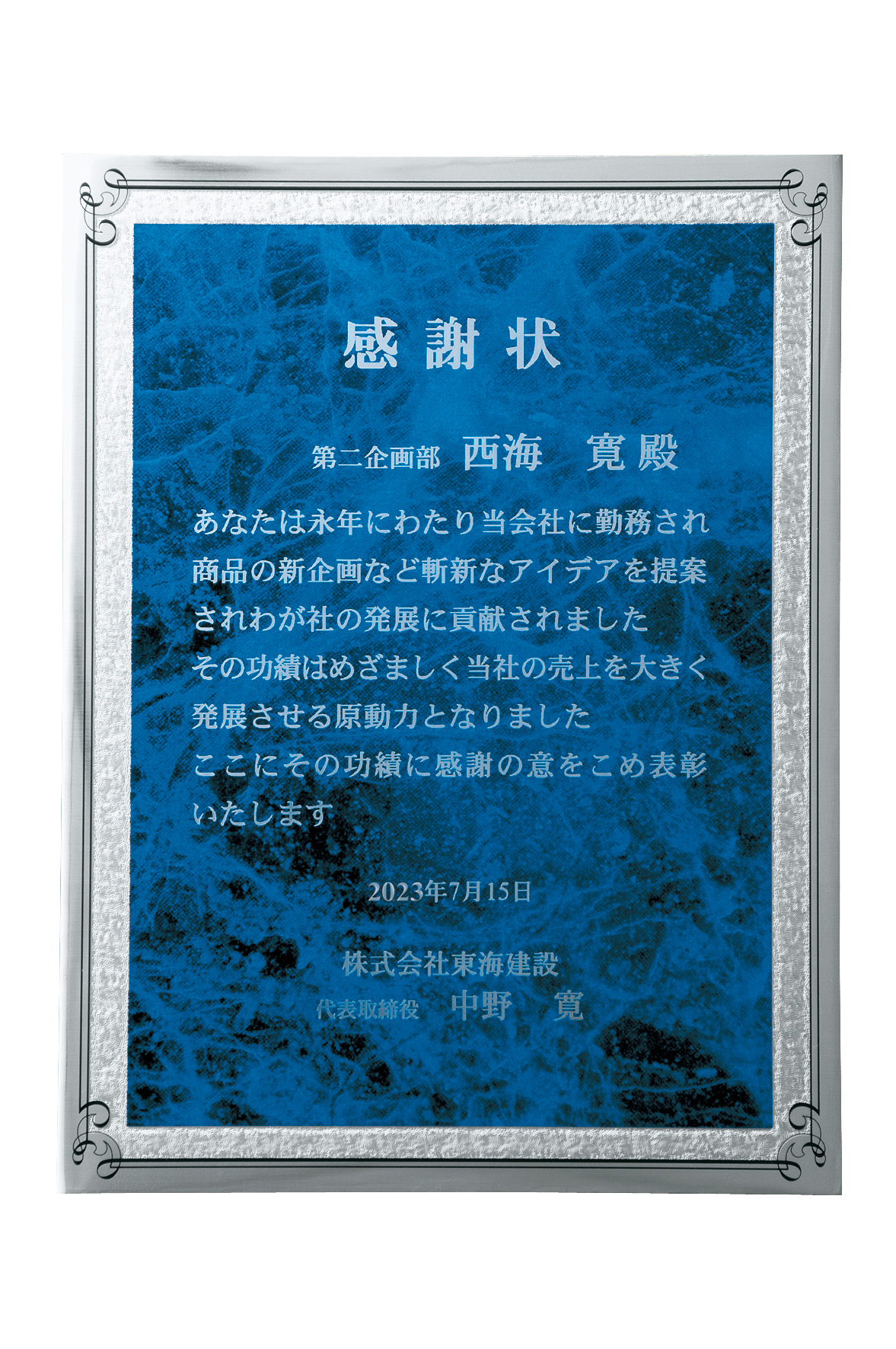 アルミプレート表面とクリスタルメダル表面に名入れが可能です。