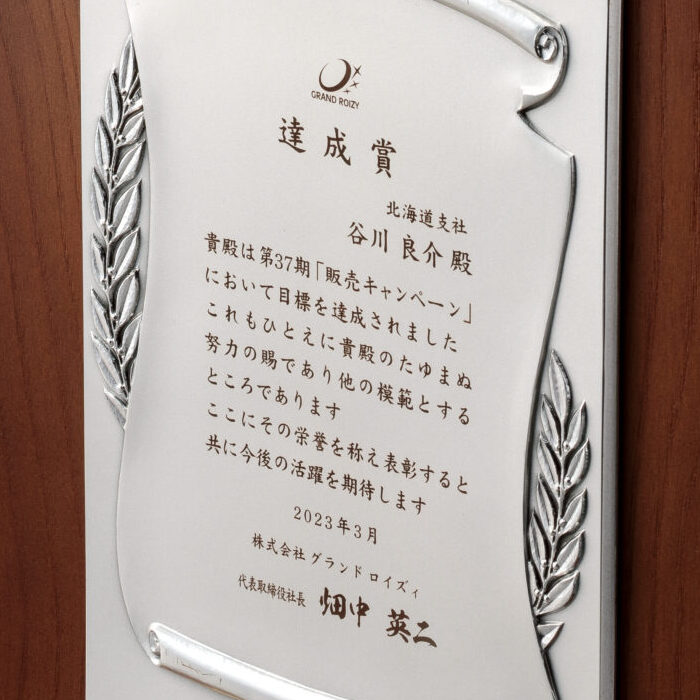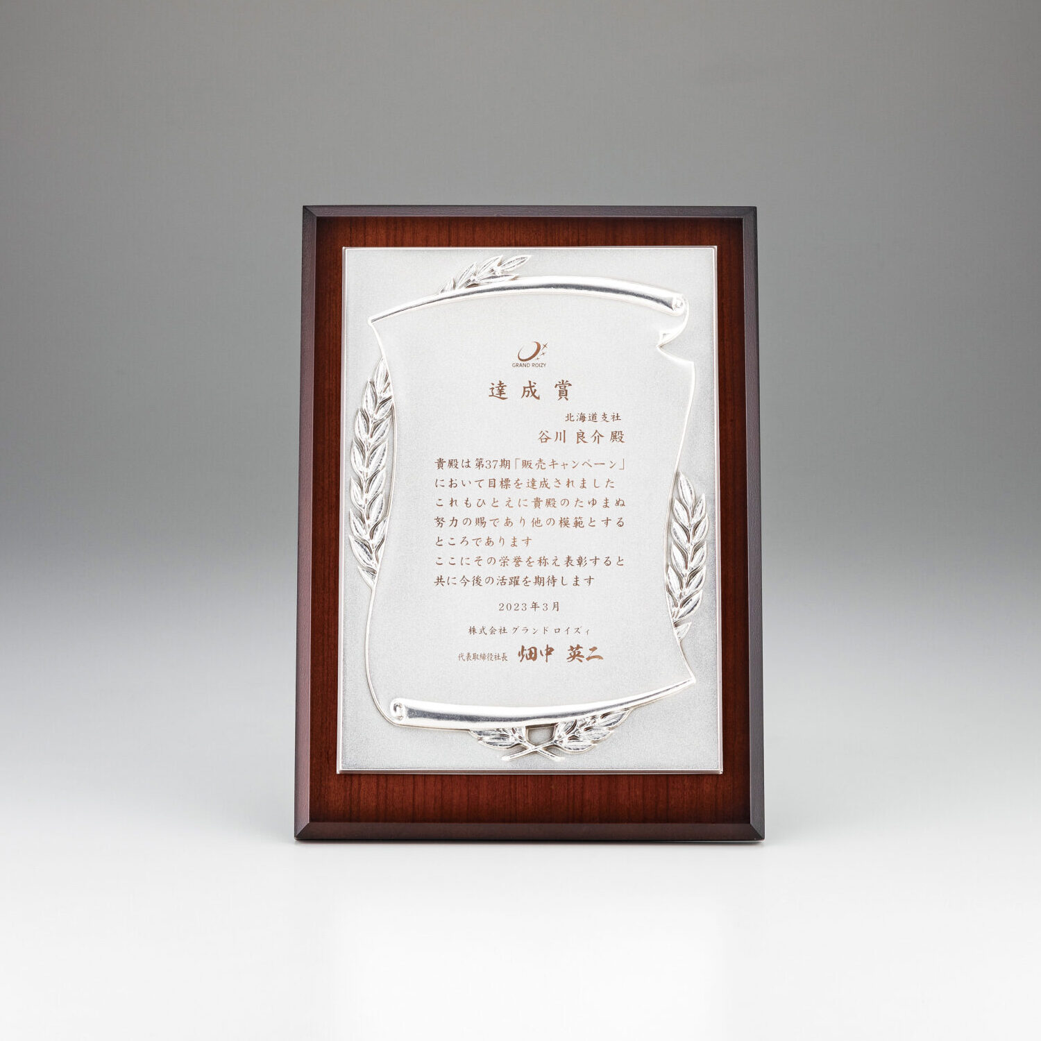 美しい凹凸が特徴の電鋳製レリーフがついたスターウッド材製の楯です。