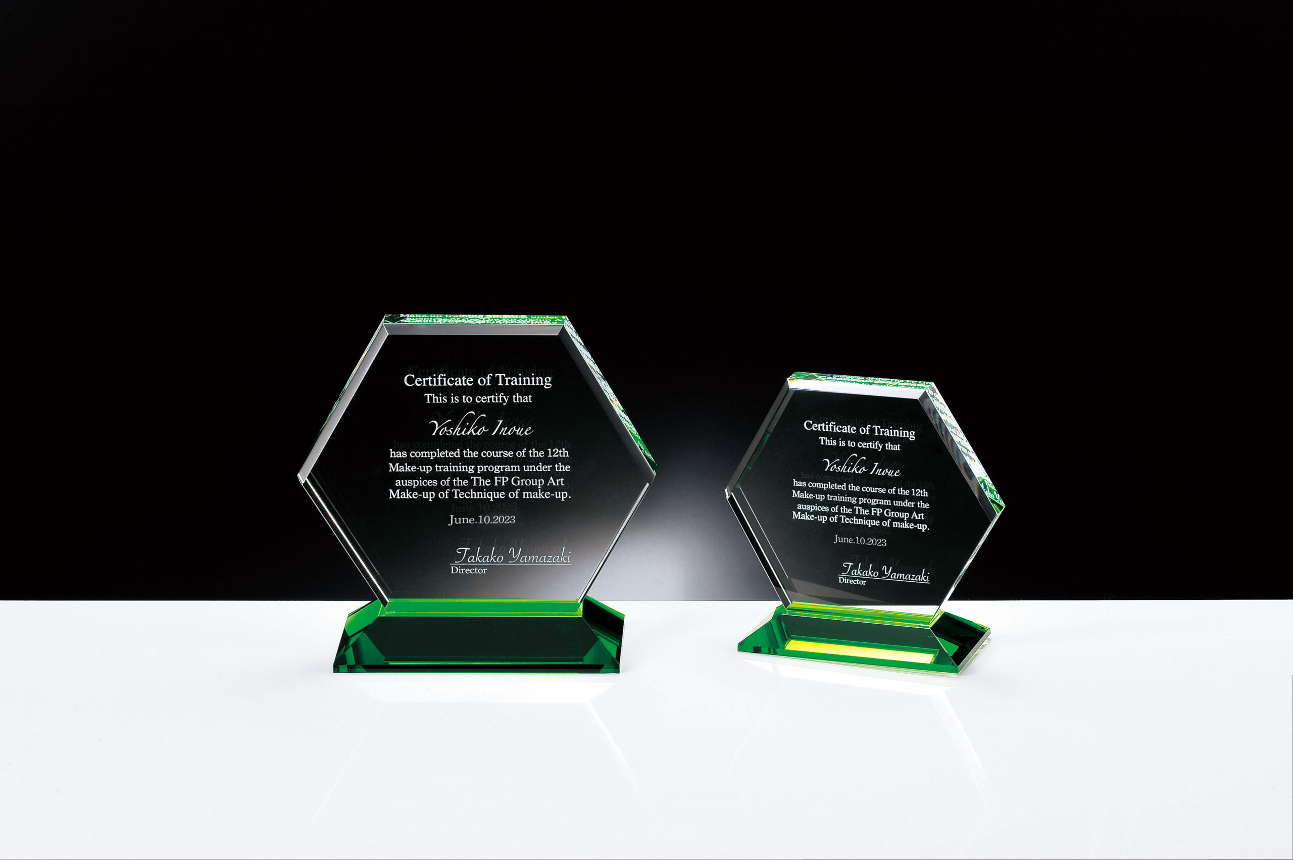 クリスタル表面に名入れが可能です。